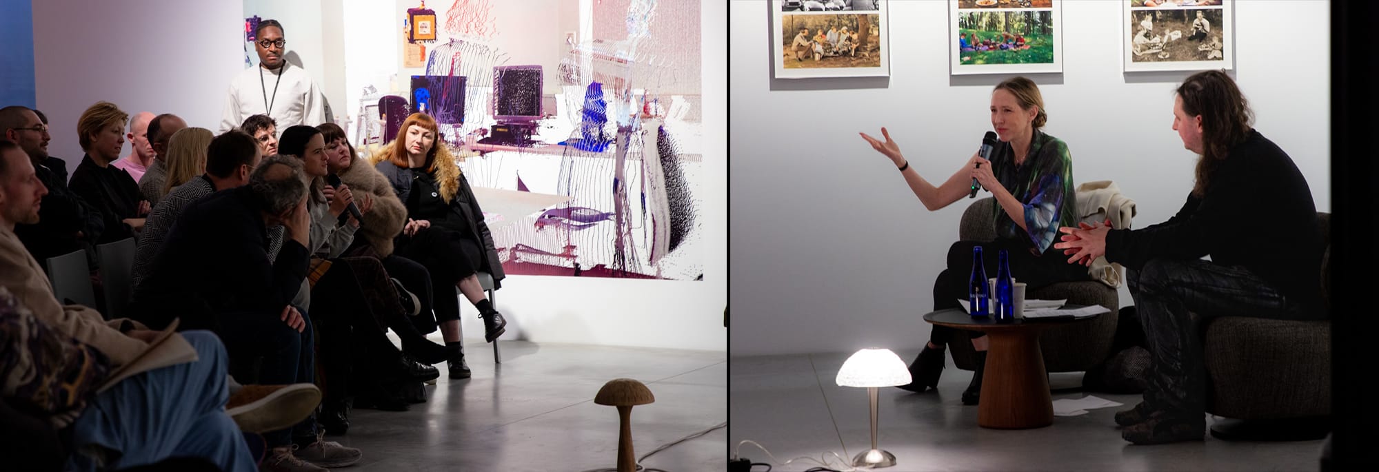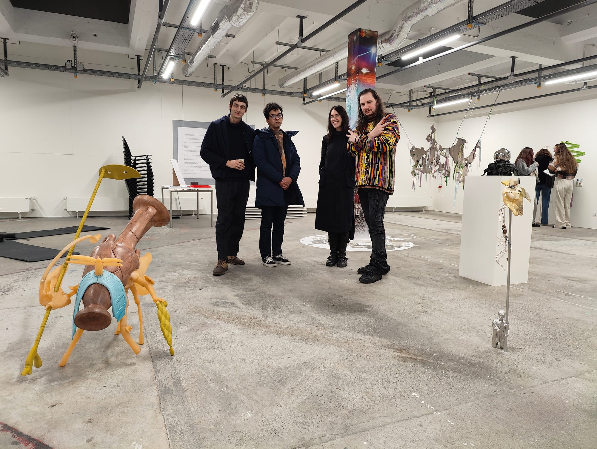 Scenes from the opening and installation details of Side Quests For The Real, Dec 2-21, 2025