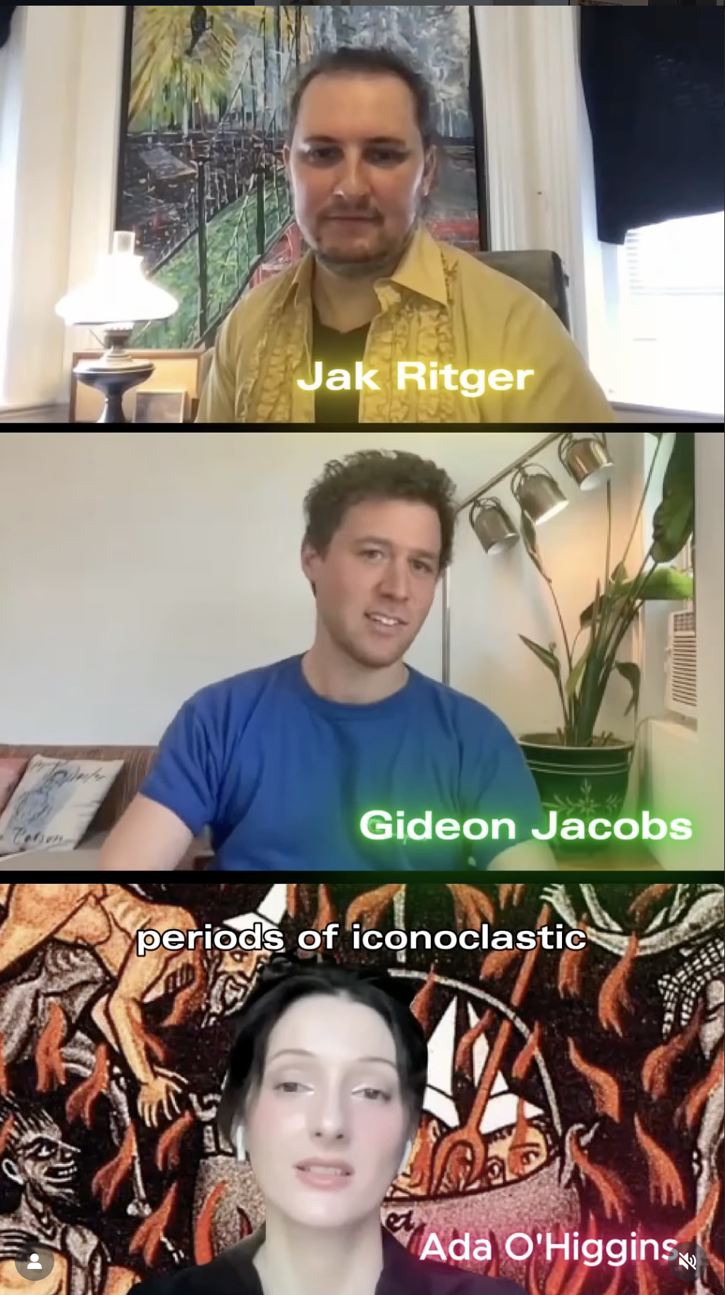 Oct 8 - Online - The film Gideon and I created for his stage show found a home for online viewing through art & essay film collection, DIS.art. "Beeldenstorm Meditation" is my second film to have the honor of becoming embedded within this prestigious and aesthetically-unhinged streaming site. The first is "Spooky Castle" which debuted in 2023. "BeelMed" is the perfect fit for a DIS film as it is equal parts fine-art critique, essay film and new media fever dream. I joined DIS producer, Ada O'Higgins and Gideon for an IG Reels chat to promote the launch of the film. The conversations was really elucidating, we chatted about iconoclast periods in art history, I floated Nate Sloan's theory of NYC's Vessel as demonic resonator and Ada hit me with a gotchya questions: Do you believe in God?
