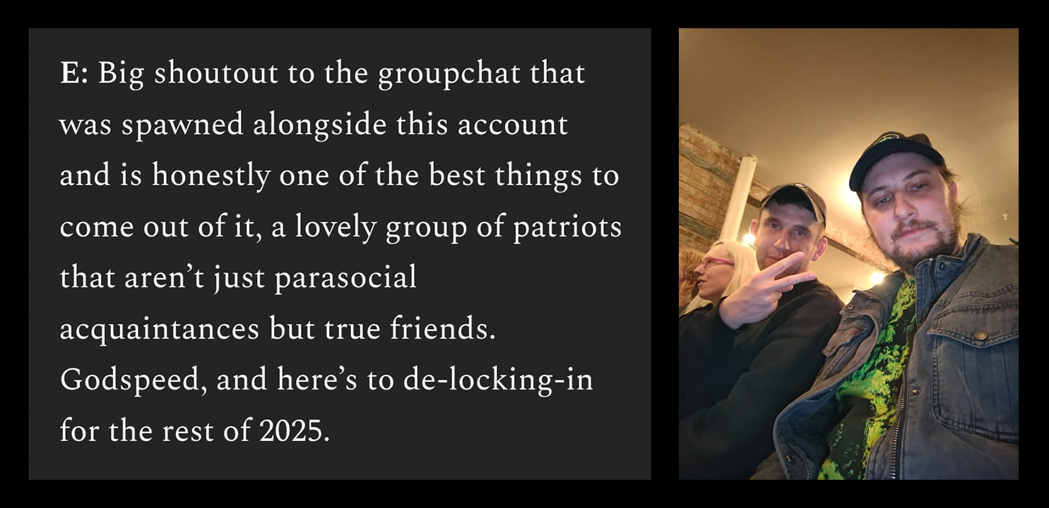That's all for 2025, it was an exhilarating, perspective-shifting year. I still can't believe I did all the things I did. 2026 is going to be much much more chill. I am excited to get to all the things still left unfinished from this crazy year. Thank you to everyone who engaged with my work, your interest makes this all worth it. ~~Cheers to what the future holds! - Jak