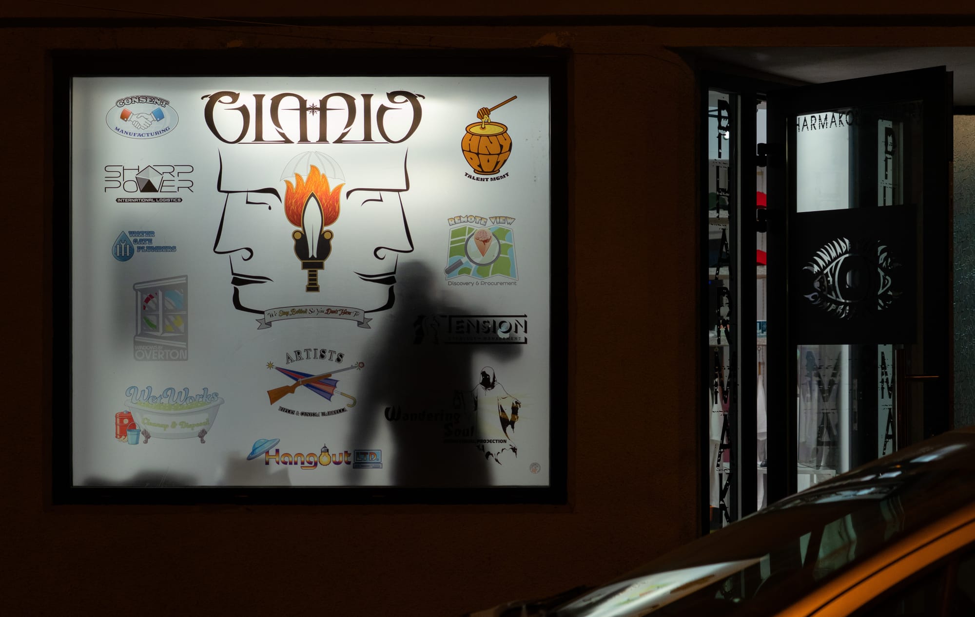 I pulled design references from a range of eras: the minimal chic law firm, the friendly neighborhood fast casual greasy spoon, the venture backed app startup, the deadhead-run electronics store. I wanted to create a parallel world through visual language as a way to hold a mirror to the para-history of clandestine operations. Corporate insignia and small business decals serve as a fronts, CIA cutouts funding modern art or surveilling you form inside a local contractor van on your block. A logo is a projection of power and during the cold war it was all about posturing, simulating, war gaming and inflating the position of the state. Perhaps through an act of radical branding we can cut through the fog of information war and recover a sharper image of history. Here are some breadcrumbs to help you track down the stories from each graphic in the piece. Happy hunting.
